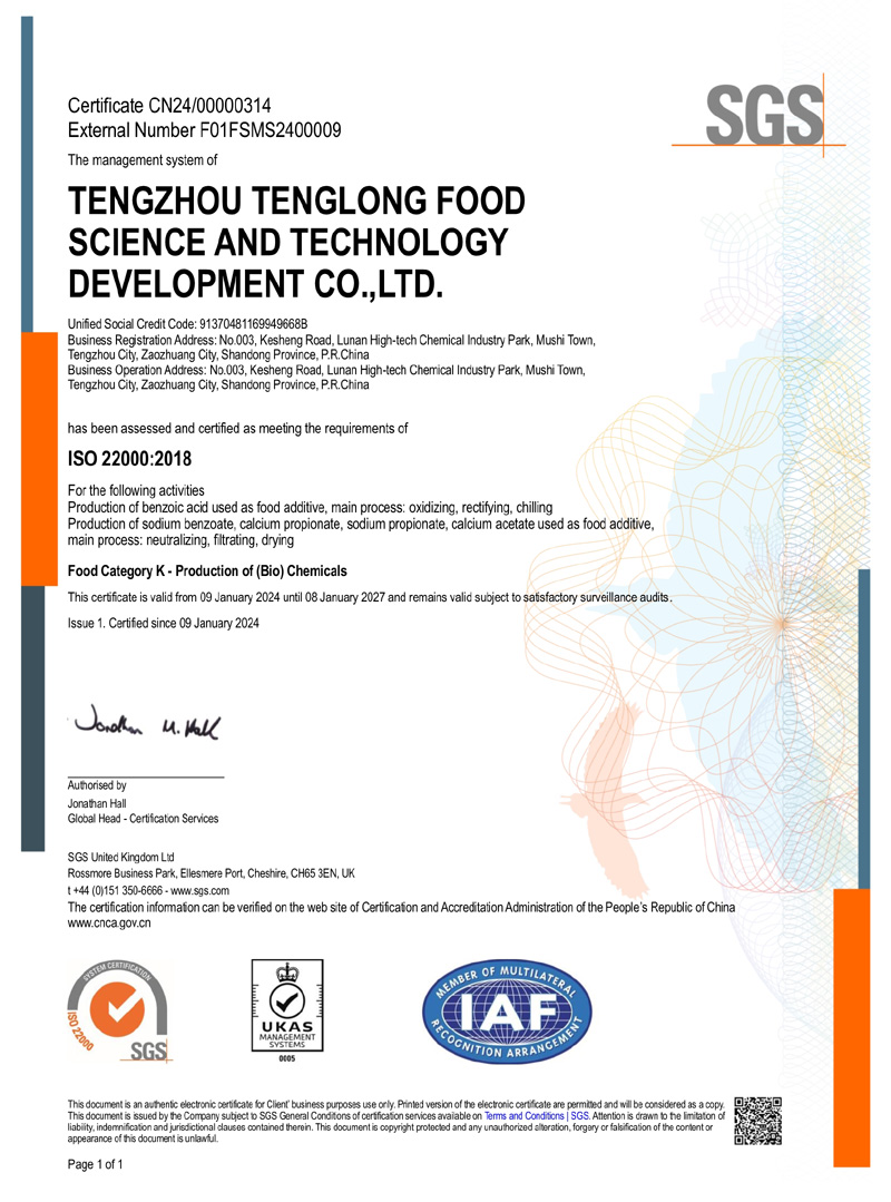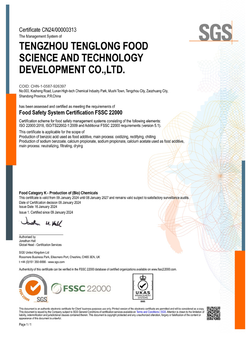 滕州市騰龍食品科技發展有限公司坐落在山東省滕州市木石鎮魯南高科技化工園區,成立于1996年,前身是滕州市騰龍化工有限責任公司,公司專業生產 苯甲酸,苯甲酸鈉,丙酸鈣,丙酸鈉和醋酸鈣等系列產品。